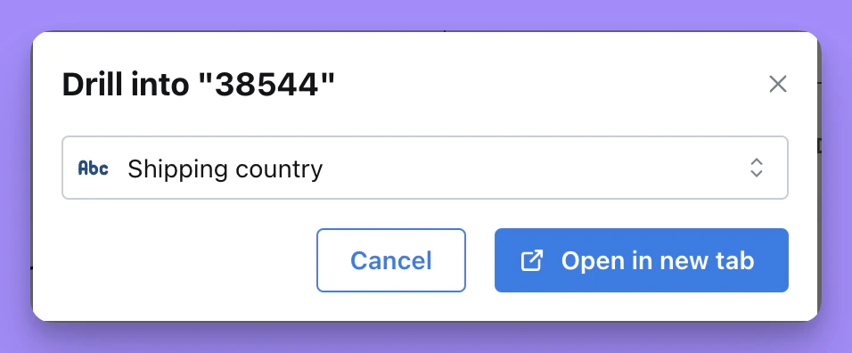 You can drill into a Metric in your chart or results table to better understand a point in your chart. Selecting Drill into lets you group your Metric by a Dimension, like revenue segmented by (or grouped by) product type. Note that Drill into only works for Metrics, not for Dimensions or Table Calculations.