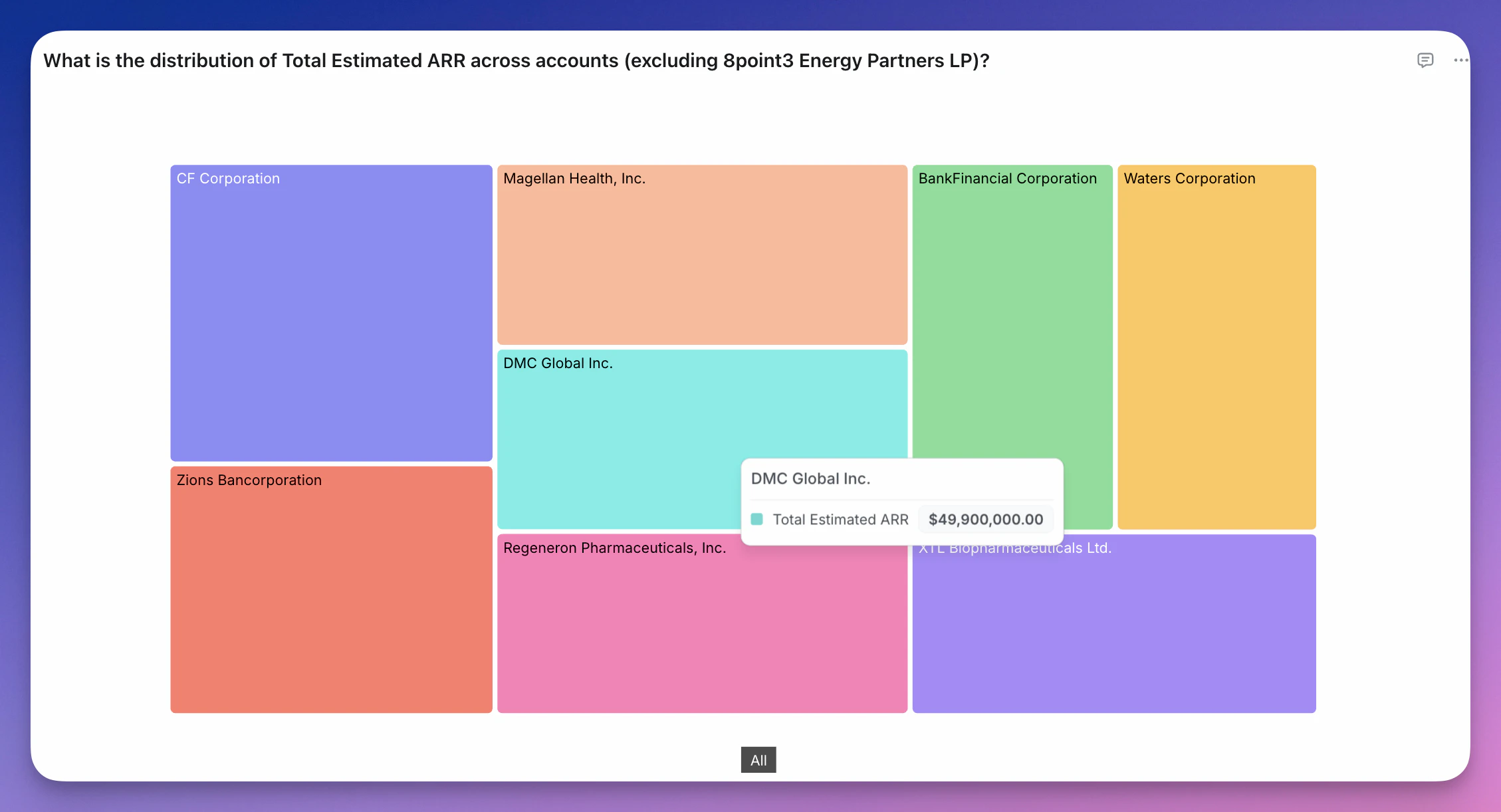 Treemaps show parts of a whole using nested rectangles. Each rectangle’s size represents the value of a metric, and dimensions define how the data is grouped and nested. You can use a single dimension or multiple and they will work as described below. One dimension: Each category becomes a rectangle, sized by the metric value.
