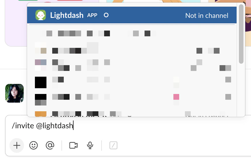 • Use the invite command - Type /invite @Lightdash in the channel