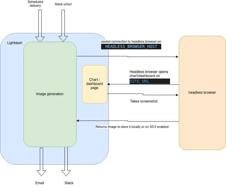 If you are running Lightdash on self-hosting, you will also have to run this headless browser on your infrastructure.